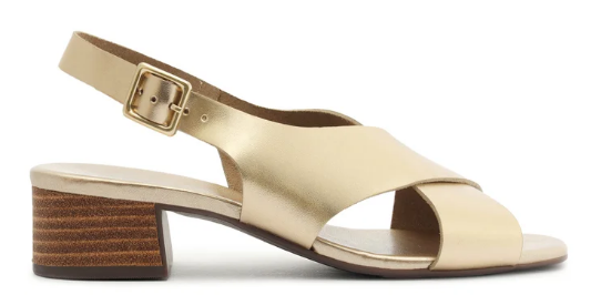 Sandália Salto Bloco Tiras Cruzadas Couro Dourada – ANACAPRI BARRETOS