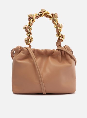 Bolsa Bucket Bege Couro Pedraria Pequena