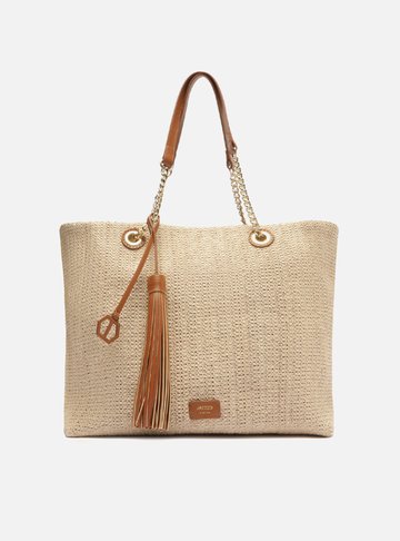 A cara da temporada! A bolsa em palha é tendência e insere um toque despojado nas produções. Ela também acomoda seus pertences com espaço e praticidade. Combine com alfaiataria em tons neutros e rasteira.
