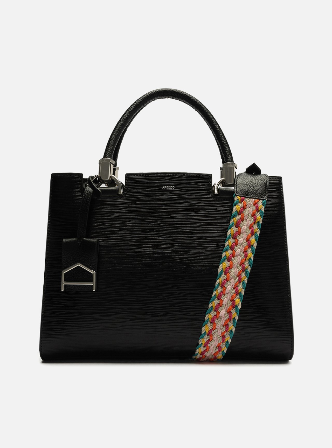 A bolsa é charmosa e insere um toque singular no visual. Elegante e espaçosa, é perfeita para acompanhar a rotina e combina com as mais diversas produções e ocasiões. Vem com alça colorida e tramada, seguindo as tendências da temporada.