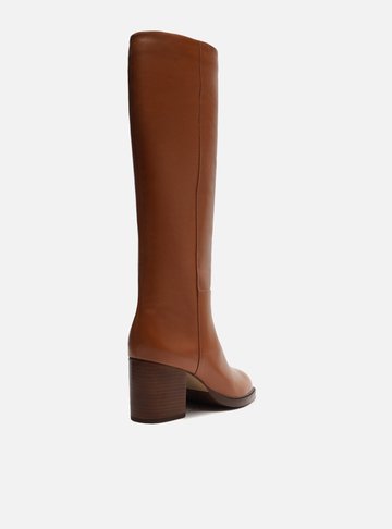 Bota Marrom Couro Cano Longo Salto Bloco Montaria