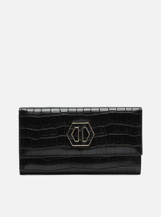 A carteira acomoda dinheiro, documentos e cartões com facilidade e tem formato amplo, perfeito para o dia a dia. O modelo vem com detalhe geométrico moderno e em croco, seguindo as tendências da temporada.