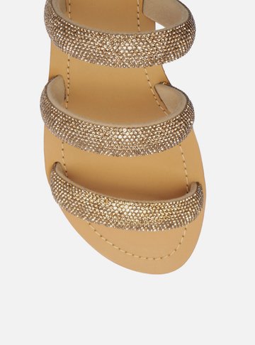 Rasteira Nude Tiras Strass Golden