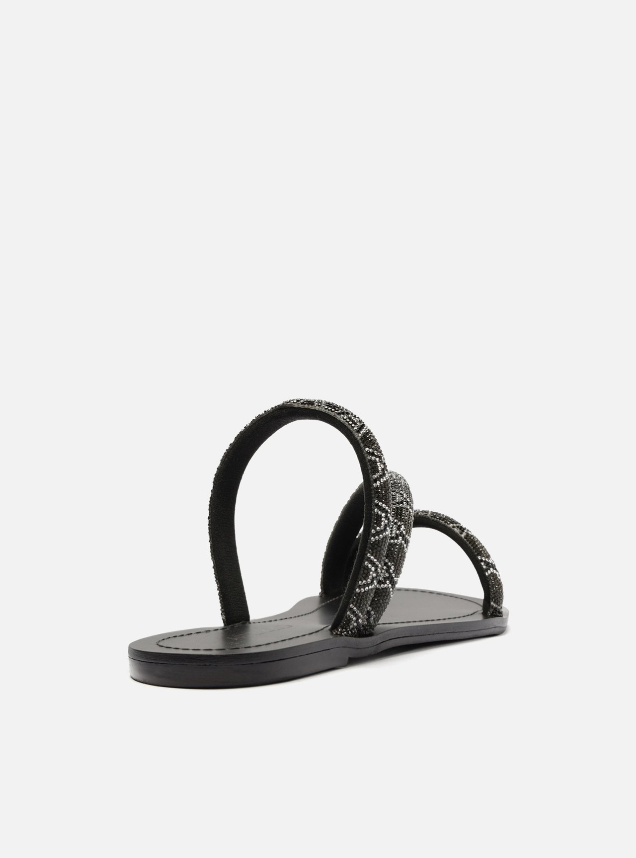 Rasteira Preta Tira Diagonal Strass