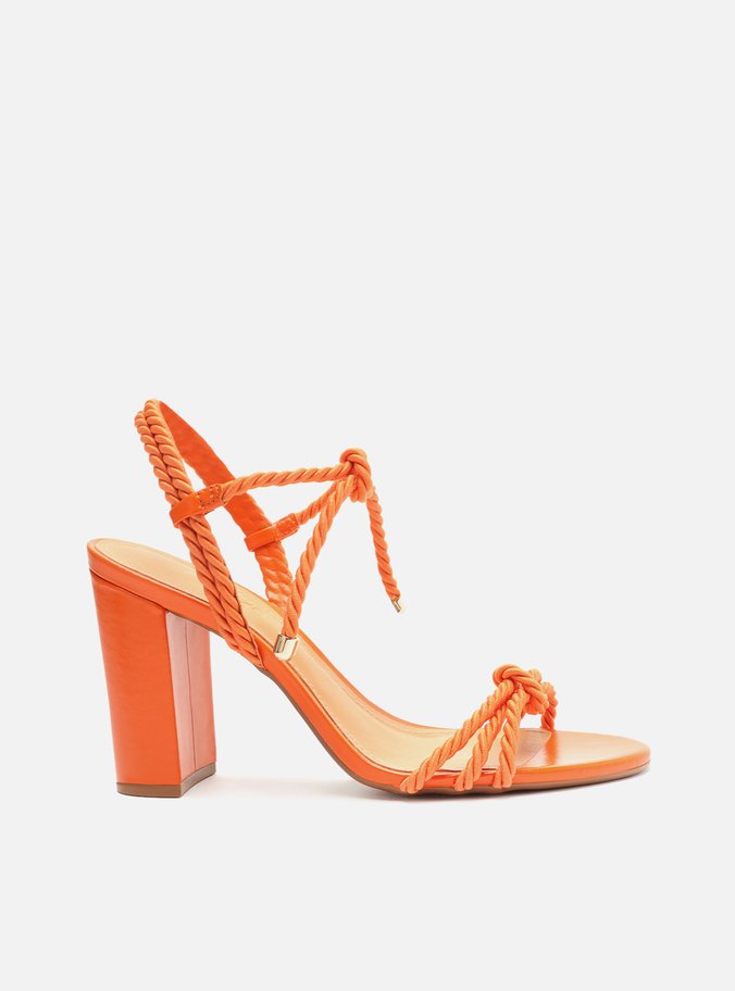 Sandália Laranja Cordão Salto Alto Bloco Nó