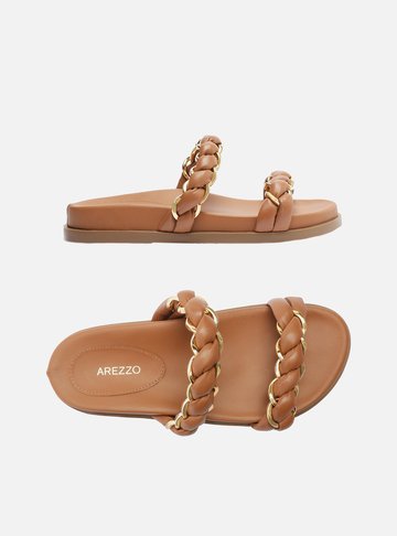 A papete aposta nas tiras com corrente e no tom neutro, garantindo um toque charmoso nos looks. Perfeita para quem busca conforto e muito estilo para o dia a dia!