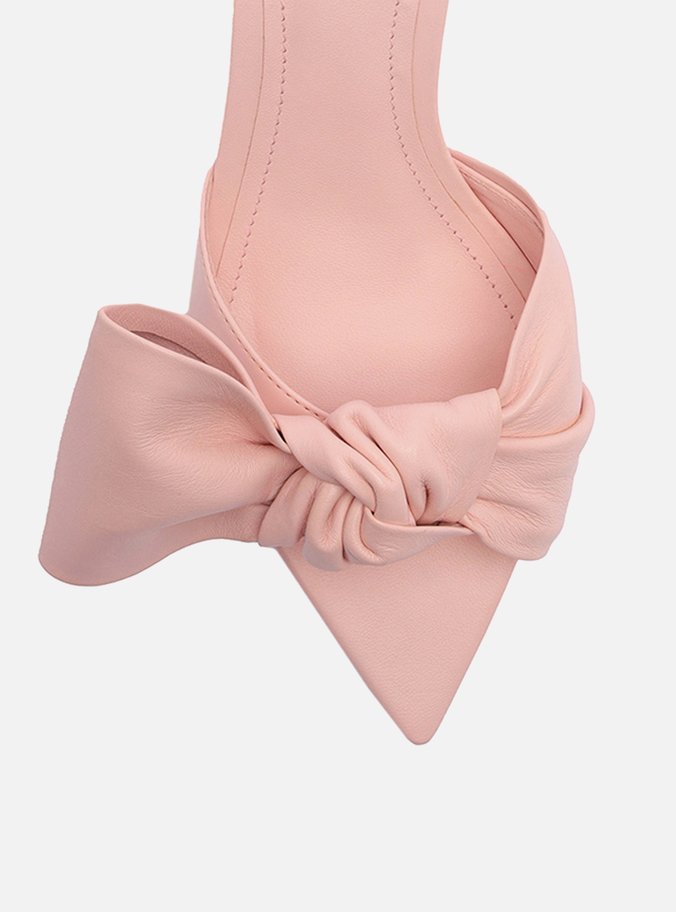 Sandália Rosa Couro Salto Fino Maxi Laço