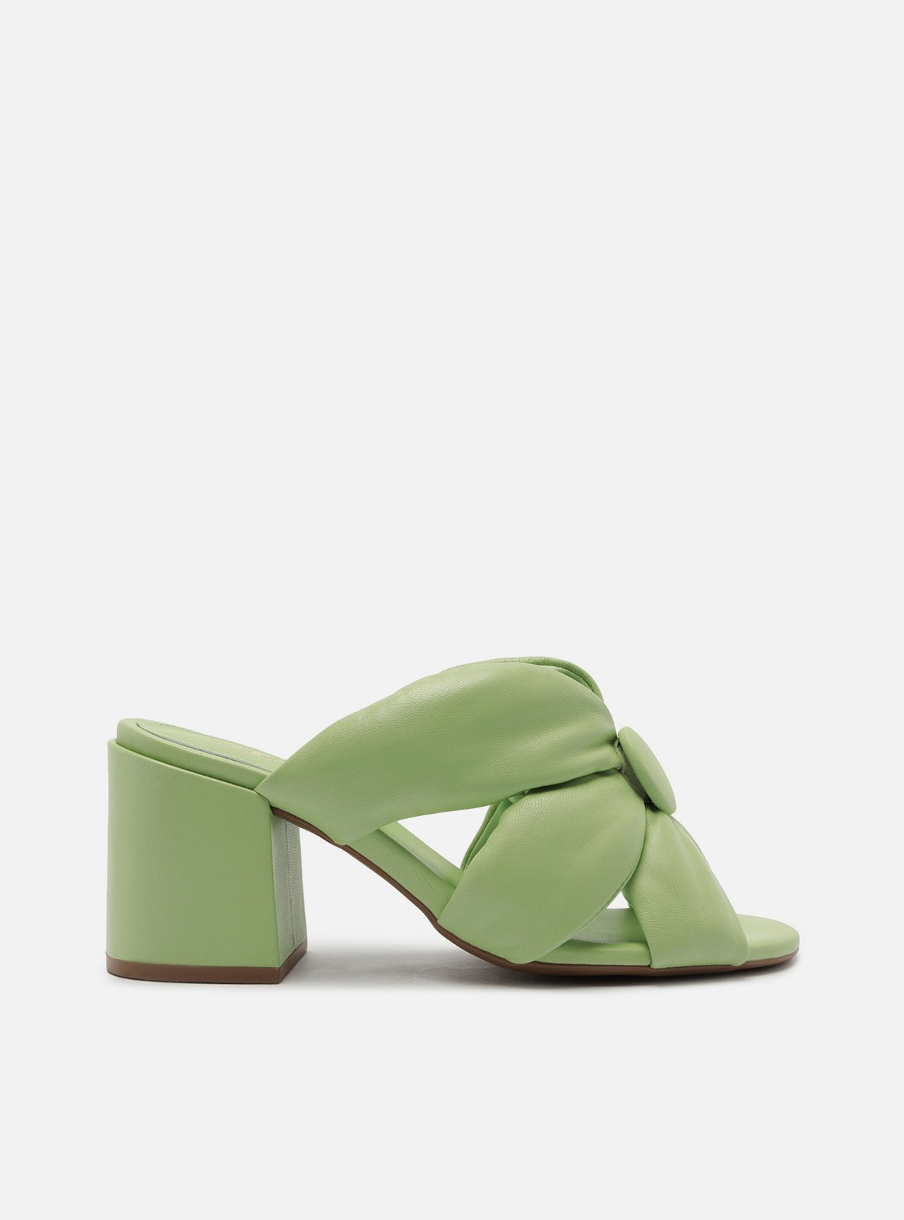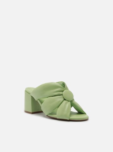 Sandália Verde Couro Salto Bloco Tiras Botão
