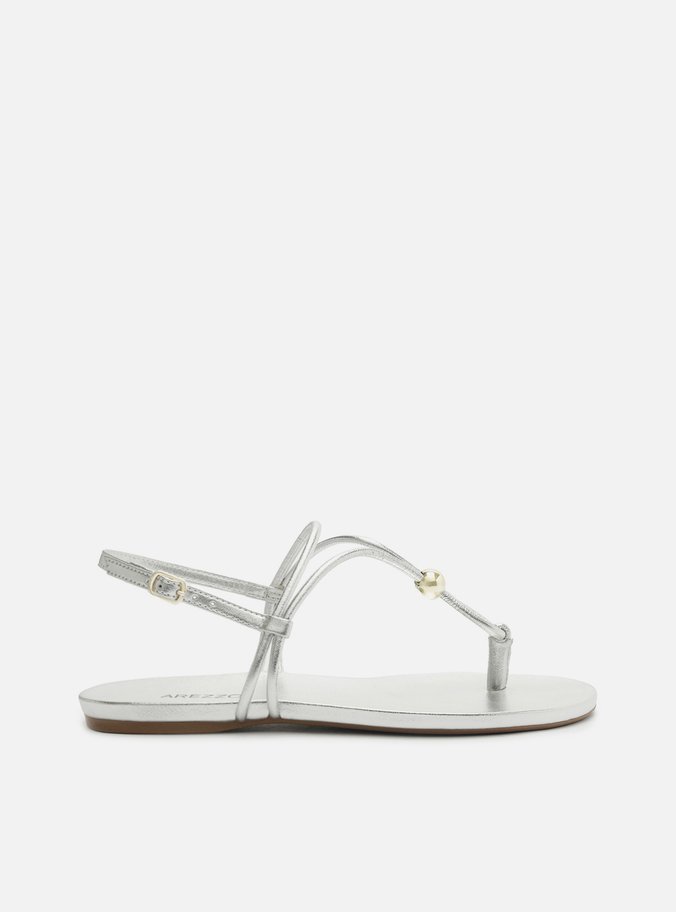 Sand?lia Rasteira Prata Tiras Slim Esfera