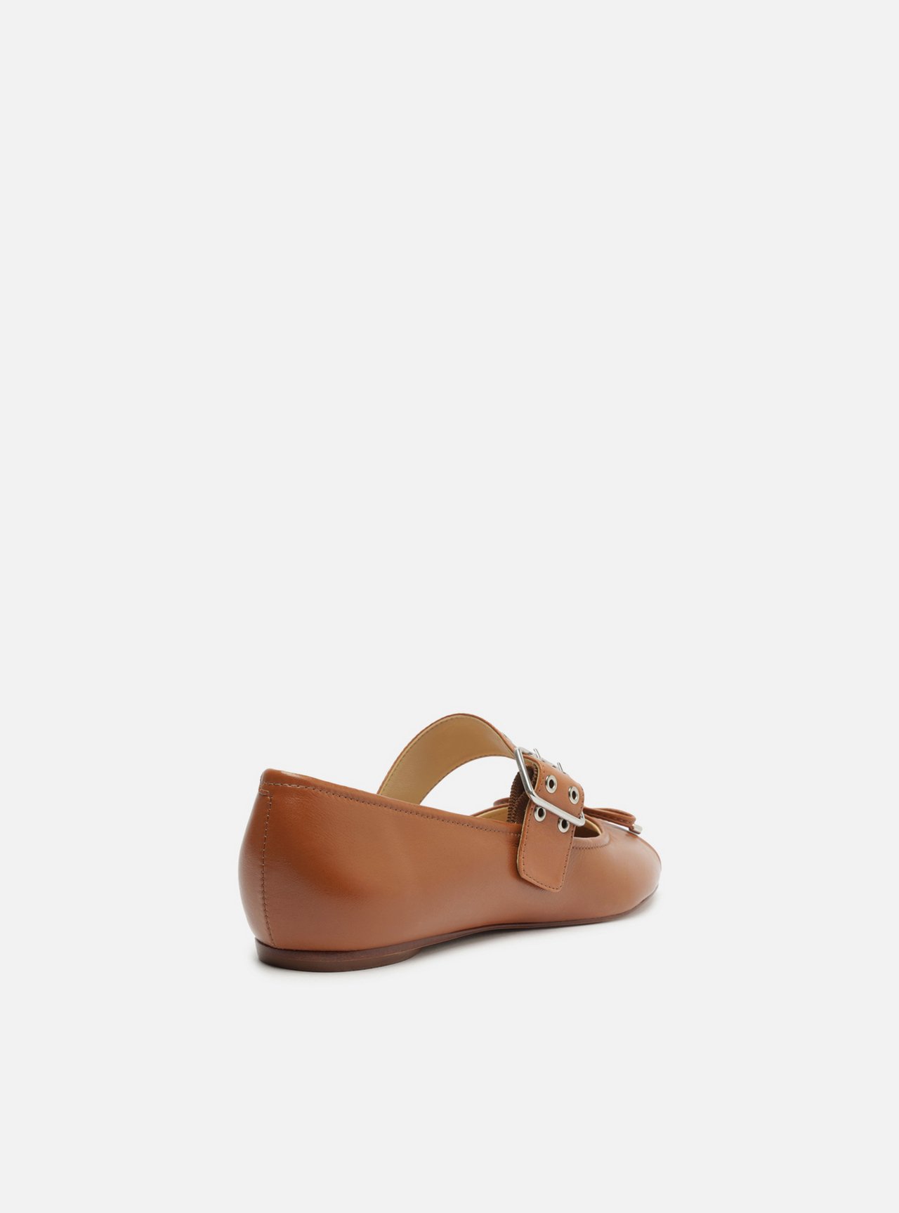 Sapatilha Boneca Marrom Couro Bico Redondo Fivela
