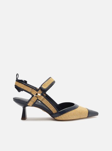 Um clássico renovado! O scarpin de bico fino surge em um mix de materiais e com pegada artesanal, seguindo as tendências da temporada. Perfeito para inserir elegância e modernidade nas suas produções!